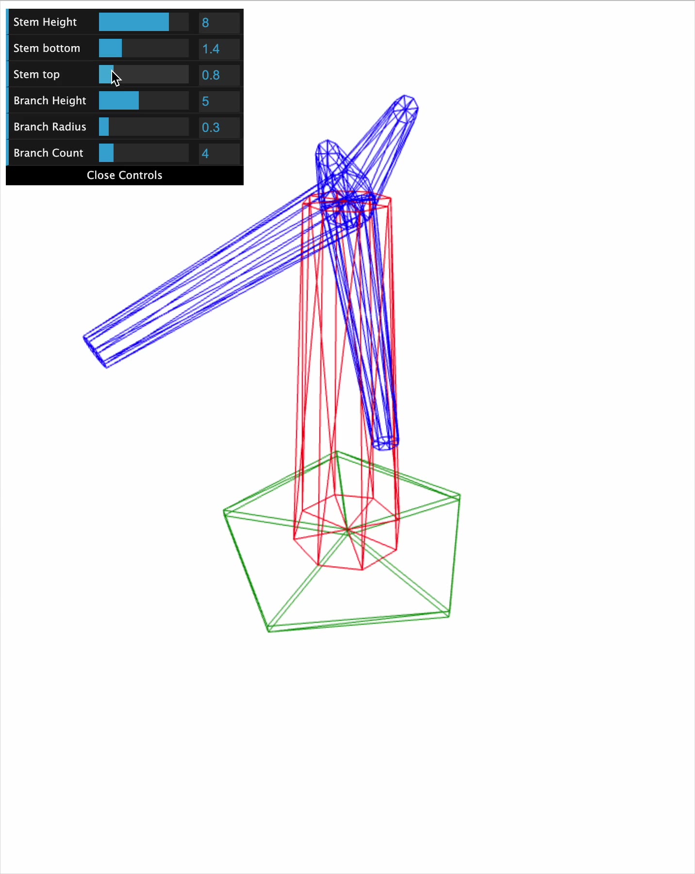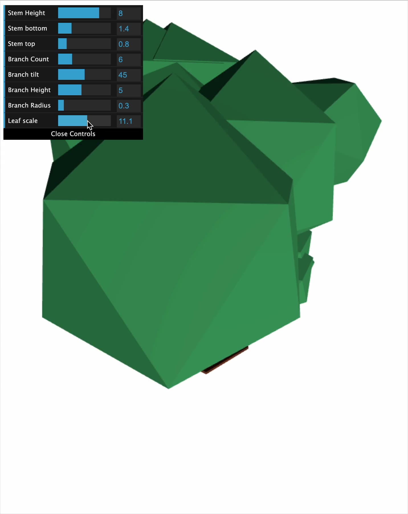 I prototyped a little generative tree builder in three.js. Feel free to play a bit and let me know your thoughts.